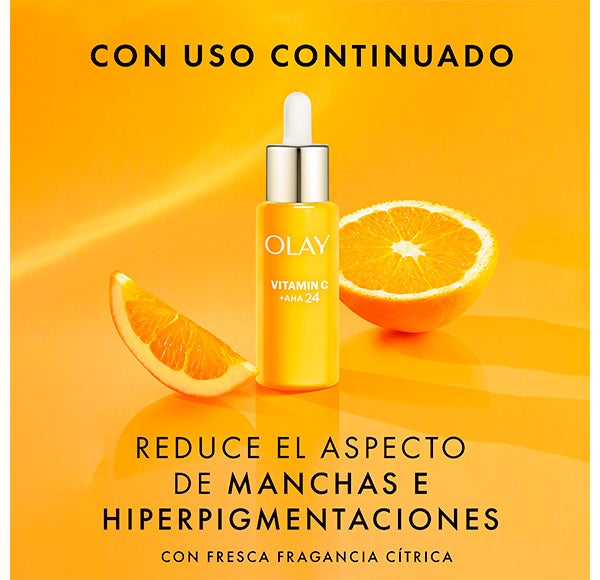 O sérum facial Olay Regenerist VitaminC + AHA24 proporciona uma pele mais luminosa em apenas 1 dia, um tom e textura visivelmente mais uniformes