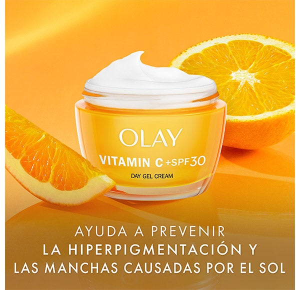 CREME DE DIA: O creme Olay Vitamin C com SPF 30 possui a tecnologia SolarSheer, que oferece uma proteção solar SPF 30 de amplo espectro contra raios UVA e UVB.