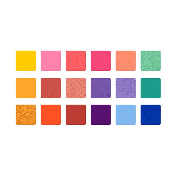 ¡Uma bela coleção de 18 sombras de olhos brilhantes que ajudam a criar looks inesquecíveis! Perfeito para um look retrô marcante que vai fazer você vibrar o dia todo.