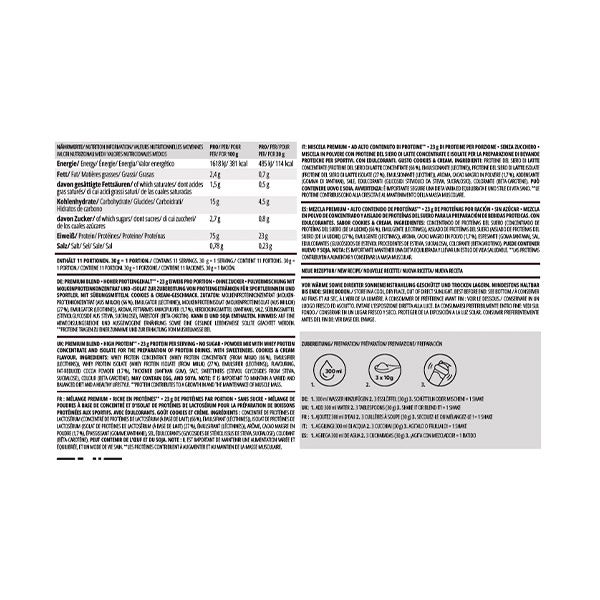 MISTURA PREMIUM* ALTO CONTEÚDO DE PROTEÍNAS**23G DE PROTEÍNAS POR PORÇÃO*SEM AÇÚCAR*MISTURA EM PÓ DE CONCENTRADO E ISOLADO DE PROTEÍNAS DO SORO PARA A PREPARAÇÃO DE BEBIDAS PROTEICAS. COM EDULCORANTES.