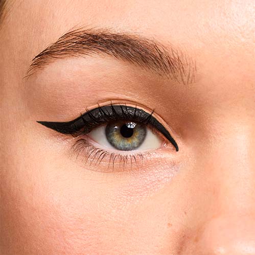 Passo 1: Comece por definir onde deseja aplicar o lápis delineador de precisão. Use a ponta de precisão para criar um ponto no centro da pálpebra, na ponta exterior e em linha com a borda exterior da sobrancelha. Passo 2: Deslize a ponta de feltro sobre a pálpebra, unindo os três pontos e fazendo um movimento para fora no final para criar uma asa definida.