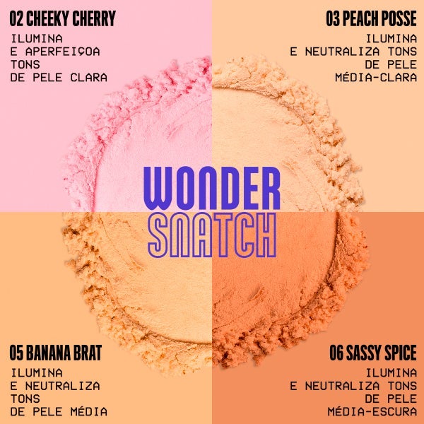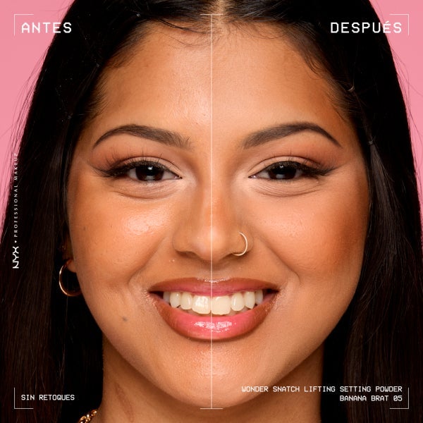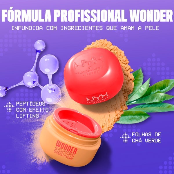 Descubra o Wonder Snatch Powder da NYX Professional Makeup, o pó solto que fixa, ilumina e levanta sua maquiagem em um único passo. Sua fórmula leve e vegana, enriquecida com extrato de chá verde e peptídeos, garante um acabamento matte sem sensação pesada. Resistente ao suor e a manchas por 16 horas, este pó multiuso transforma sua base para um rosto perfeitamente esculpido e radiante.