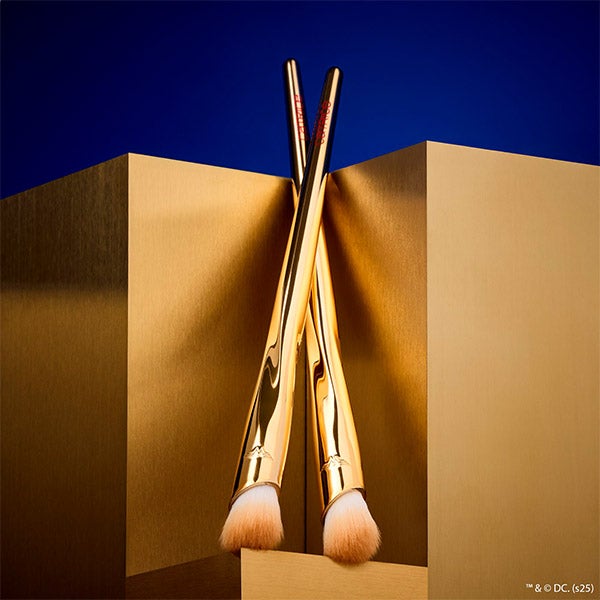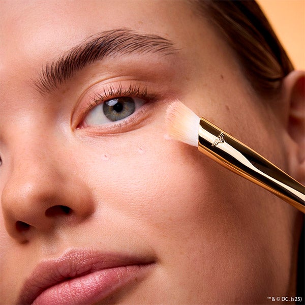 Para obter os melhores resultados, use o pincel para corretivo com seu iluminador favorito para o contorno dos olhos ou com seu corretivo líquido ou cremoso. Aplique em áreas que precisem de cobertura adicional, como imperfeições ou olheiras, usando a ponta angulada. Misture com movimentos leves e suaves para um aspecto suave e natural, e para áreas maiores, deslize suavemente para esfumar as bordas. Com este pincel, crie um acabamento perfeito para uma heroína.