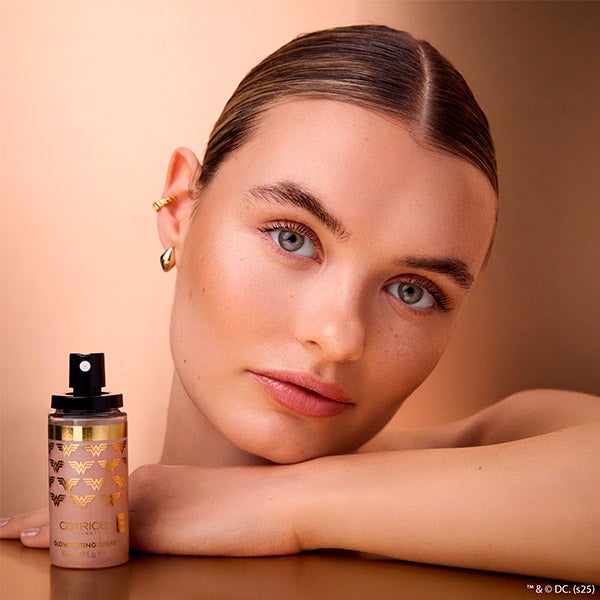 Consiga um brilho radiante que dura o dia todo com o spray fixador de brilho Wonder Woman da Catrice. Este spray fixador com finas partículas de purpurina rosa oferece uma fórmula luminosa e hidratante, projetada para fixar sua maquiagem enquanto dá à sua pele um brilho fresco e saudável. Cada pulverização proporciona um véu suave e leve que fixa seu look, mantendo-o impecável da manhã à noite. Perfeito para todos os tipos de pele, este spray fixador melhora sua luminosidade natural, adicionando um brilho sutil que ilumina seus traços de forma bonita. Com o spray fixador de brilho, sua maquiagem se mantém vibrante e fresca.