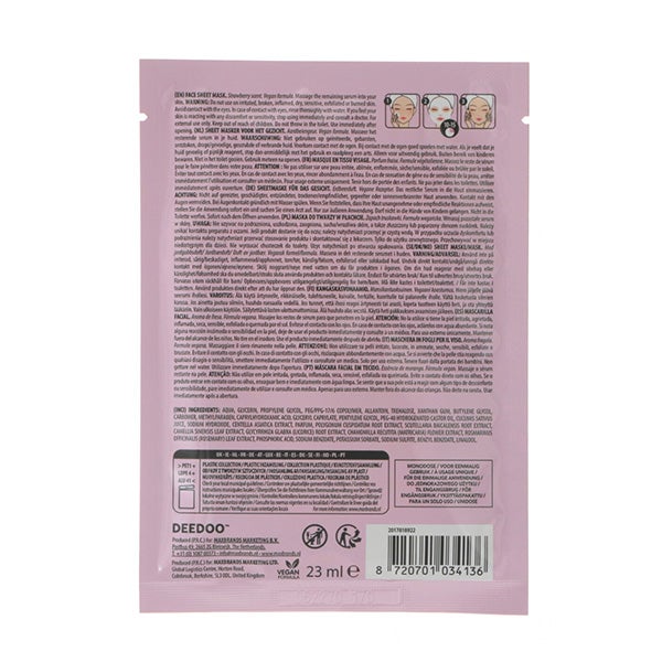 A máscara facial Wow, enriquecida com fórmula relaxante com aroma de morango.