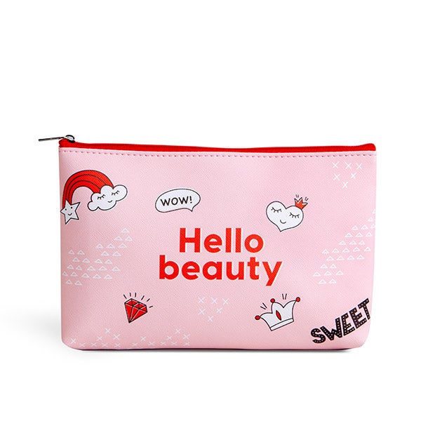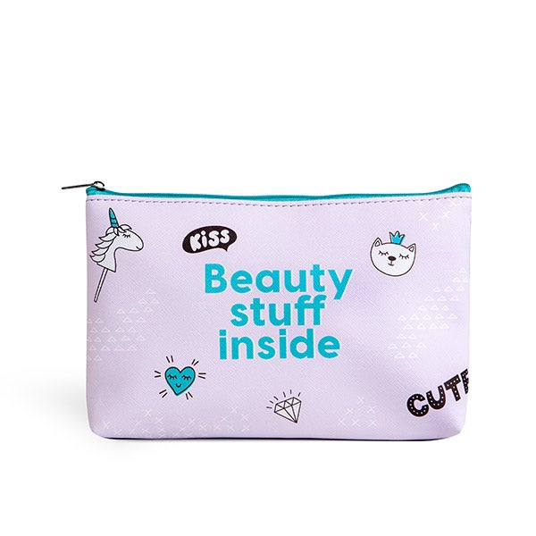 Necessaire com zíper e à prova d'água ideal para levar na bolsa graças ao seu formato e tamanho. Três modelos disponíveis com frases inspiradoras e desenhos para alegrar o seu dia.