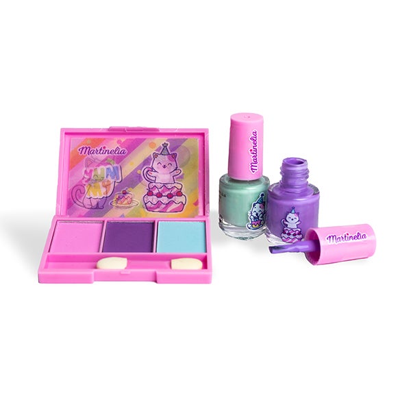 Descubra a magia da maquiagem com nossa Coleção Yummy. Este conjunto inclui uma paleta com 3 sombras de olhos vibrantes e dois esmaltes de unhas divertidos.