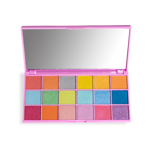 Com tanta variedade de cores é muito difícil escolher! Esta paleta com efeito emborrachado contém 18 sombras de olhos de todas as cores do arco-íris para passar uma tarde de jogos inesquecível.