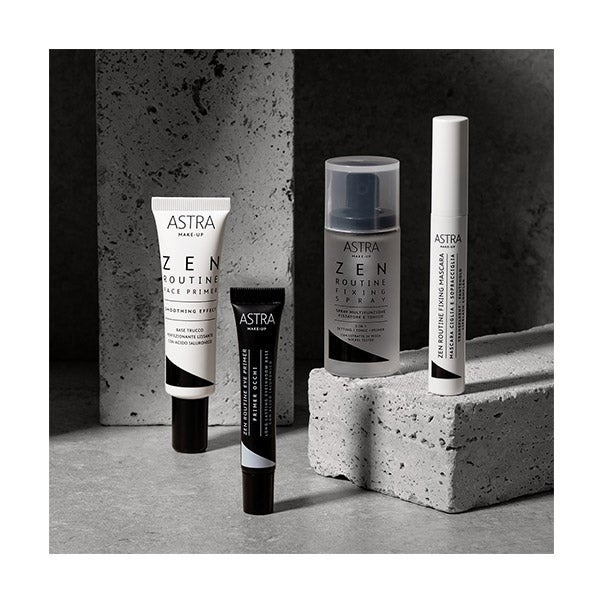 Zen Routine é a coleção da Astra Make-Up dedicada ao mundo do primer: fórmulas de alto desempenho capazes de aumentar a duração da maquiagem através de uma sensorialidade relaxante e satisfatória, organizadas em passos rituais em um jardim zen ideal. Produto com certificação de qualidade vegana.
