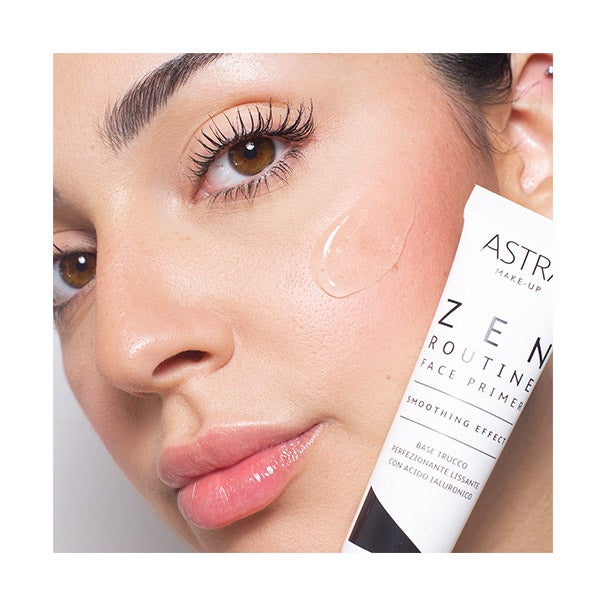 Zen Routine Face Primer Smoothing Effect é uma base de maquiagem aperfeiçoadora e alisadora. Uma preciosa camada transparente com um delicado aroma a aloe vera que, como um tratamento de beleza, realça a tez alisando a pele do rosto, atenuando a visibilidade de poros dilatados, rugas e linhas de expressão. Contém águas florais destiladas e ácido hialurônico, que ajudam a purificar e descongestionar a epiderme. Aplicado antes da base de maquiagem, aumenta seu desempenho e duração, tonificando a pele e proporcionando ao rosto um efeito lifting imediato. Zen Routine é a coleção da Astra Make-Up dedicada ao mundo do primer: fórmulas de alto desempenho capazes de aumentar a duração da maquiagem através de uma sensorialidade relaxante e satisfatória, organizadas em passos rituais em um jardim zen ideal.